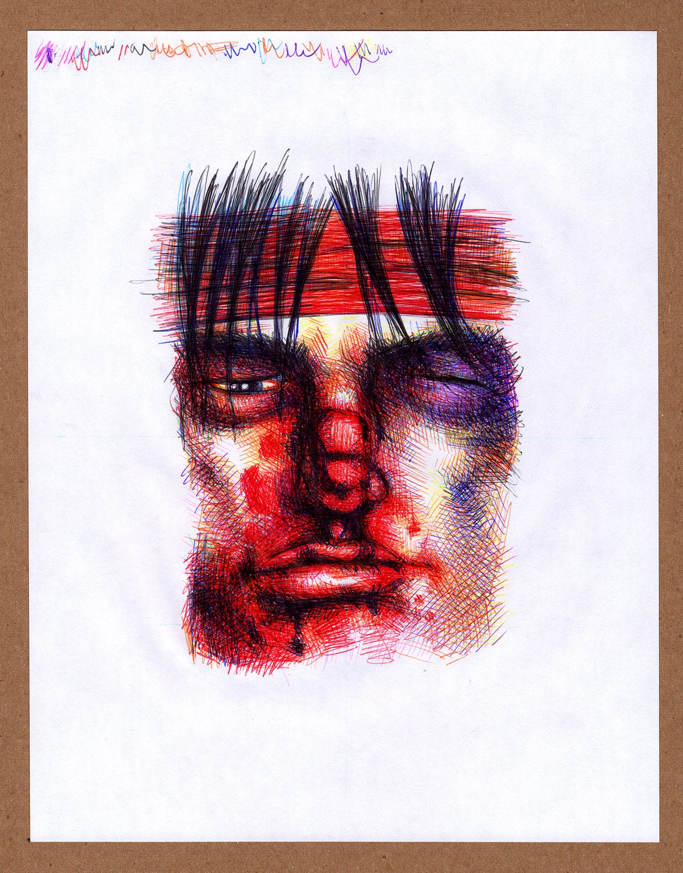 Death Fight Forever is inspired partially by 80s/90s video games like Double Dragon. The idea to do a pixellated, beaten up face goes back to some Street Fighter art I made in the early 2010s. This idea didn’t make my final piece from that time, but I always thought it made sense for a video game homage. I remember in Mike Tyson’s Punch Out, fighters would show blood and bruises between rounds. A few games did that. So here’s my effort.