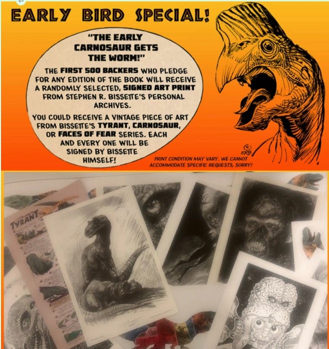 The FIRST 500 BACKERS who pledge for any edition of the book will receive a randomly selected signed art print from Stephen R. Bissette's personal archives!